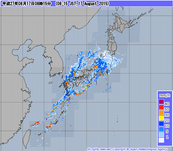 8月17日西日本と東日本太平洋側を中心に非常に激しい大雨が降る見込みです。